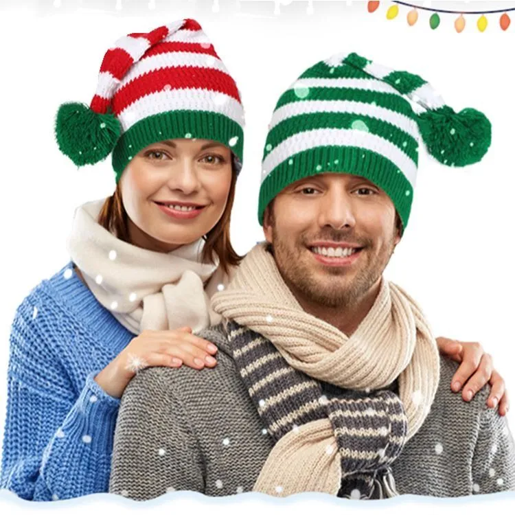 Christmas Knit Beanie?- Red and Green Striped Hat with Long Tail Pompom, Cozy Winter Essential